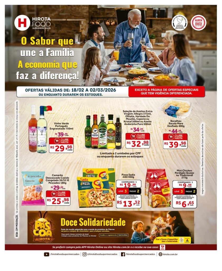 Ofertasadmin2024-11-13T20:10:15-03:00 Confira nossas ofertas! Ofertas Exclusivas Cliente Clube de Vantagens | 27 até 01/03/2026Ler maisOfertas de Final de Semana | Válidas de 27/02 até 01/03/2026Ler maisTabloide Quinzenal | válida de 18/02 até 02/03/2026Ler mais Dicas! Escala de intensidade dos vinhos e como harmonizá-los Leves, médios ou encorpados. A escala de intensidade dos vinhos pode variar de acordo com as suas estruturas, com […] Ler mais Faça seu pedido sem sair de casa. Clique no link abaixo, baixe nosso app Hirota Online e aproveite! Gostaria de receber nossas ofertas? Cadastre-se! Ao utilizar este formulário concorda com o armazenamento e tratamento dos seus dados por este site e a Política de Privacidade e Cookies.